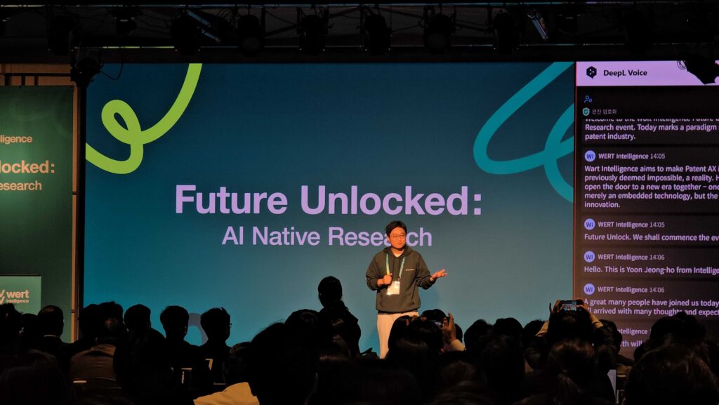 특허 버티컬 AI 기업 워트인텔리전스가 지난 22일 프리뷰 행사 'Future Unlocked: AI Native Research'를 개최했다. 국내외 200여 기업이 참석한 이번 행사는 신제품 '키워트 인사이트(keywert Insight)' 출시를 앞두고 진행되었다.