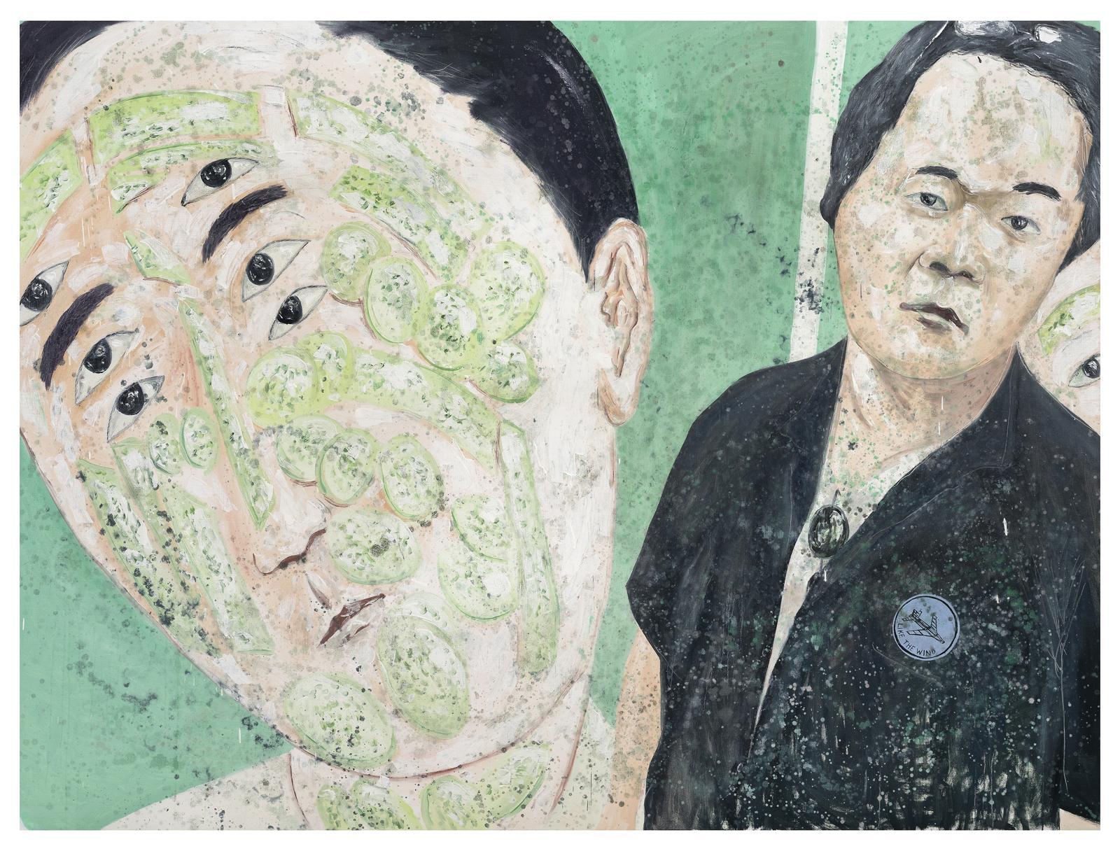 마지막 ‘내면’의 공간인 3층에는 민트색으로 칠해진 벽면에 오이 그림이 가득하다. 오이 팩 마사지를 하고 있는 작가의 얼굴이 여러 겹으로 유쾌하게 표현돼 있다.