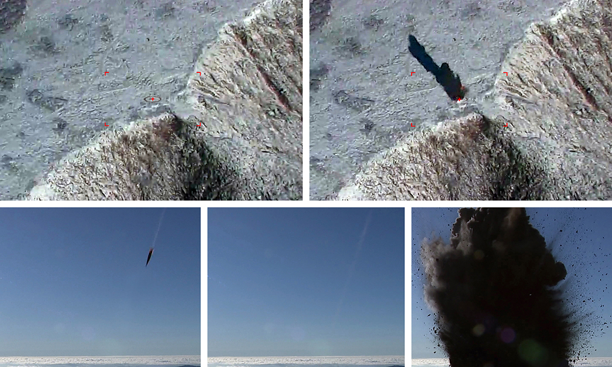 평양서 400㎞ 거리 비행 23일 북한 관영 조선중앙통신은 전날 발사한 극초음속 비행체 2기가 발사지점인 평양시 역포구역에서 약 400㎞ 떨어진 함경북도 어랑군 궤상봉등판 목표지점에 떨어졌다고 보도하며 낙하, 폭발 장면을 담은 사진을 공개했다. 평양=조선중앙통신연합뉴스 |