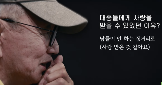 대중에게 사라을 받을 수 있었던 이유에 대해 그는 “남들이 안하는 짓거리로 (사랑받은거 같다) 예로 남들은 말만하고 잘 안해,서울에서 부산까지 기차를 타고 가지 않나”라며 “그런데 부산까지 버스만 타고도 갈수있더라,그럴때 직접 (버스를 타고) 갔다와 그런 (새로운 시도나 경험을) 사람들이 재밋어한다”고 했다.