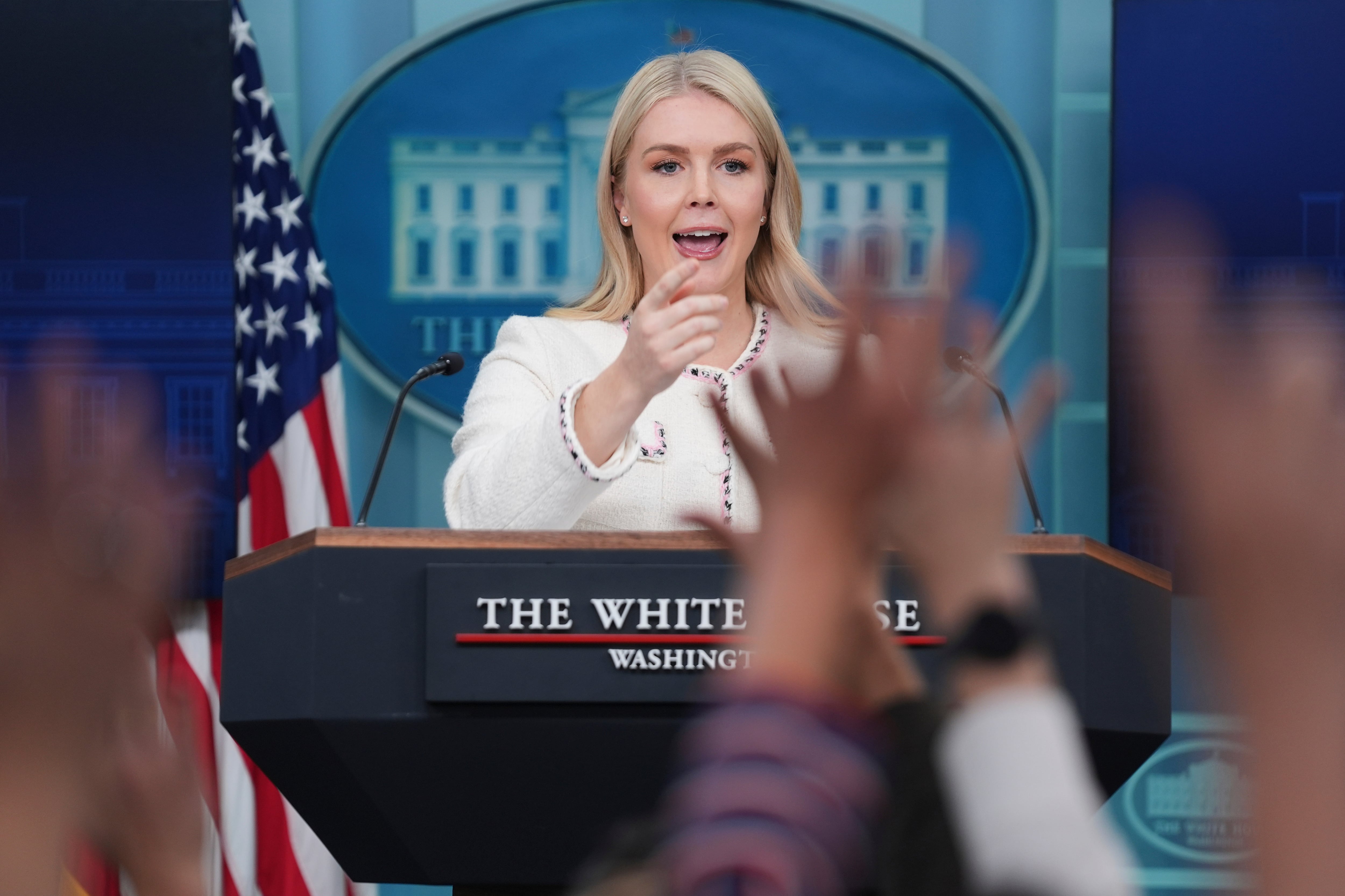 캐롤라인 레빗 백악관 대변인이 23일 브리핑을 진행하고 있다. /AP 연합뉴스 |