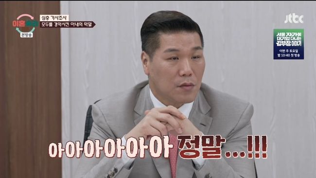 23일 전파를 탄 JTBC 예능 프로그램 '이혼숙려캠프'에서는 16기 두 번째 부부의 가사 조사가 진행됐다.