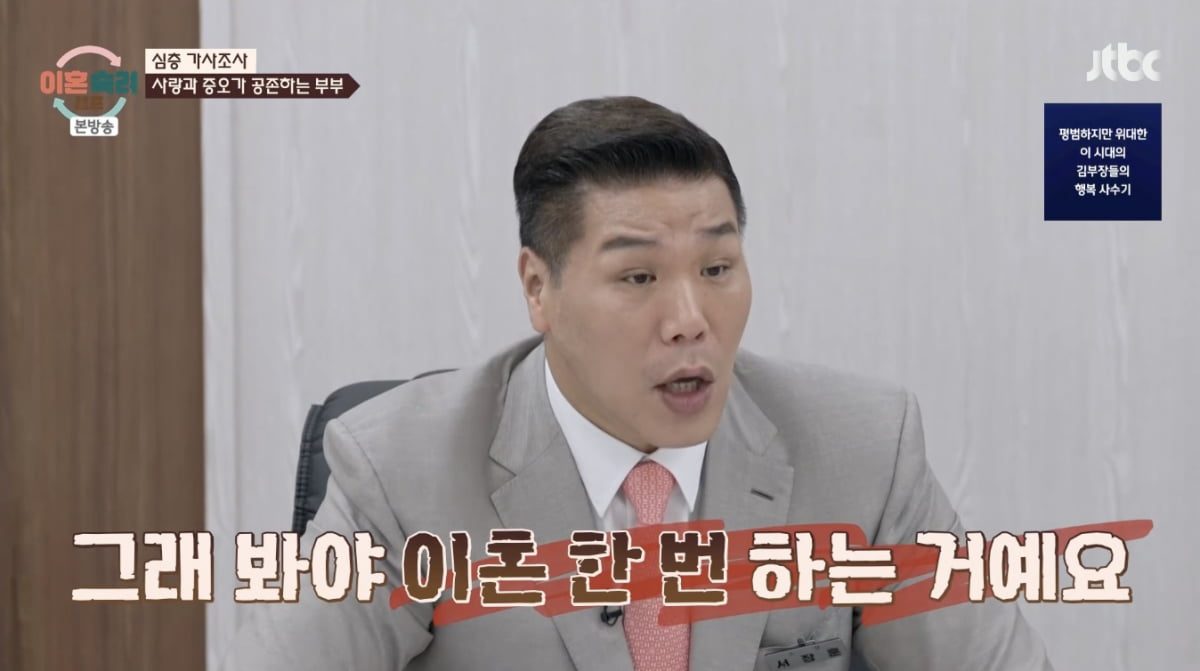 23일 방송된 JTBC '이혼숙려캠프'에서는 16기 두 번째 부부의 가사조사가 공개됐다.