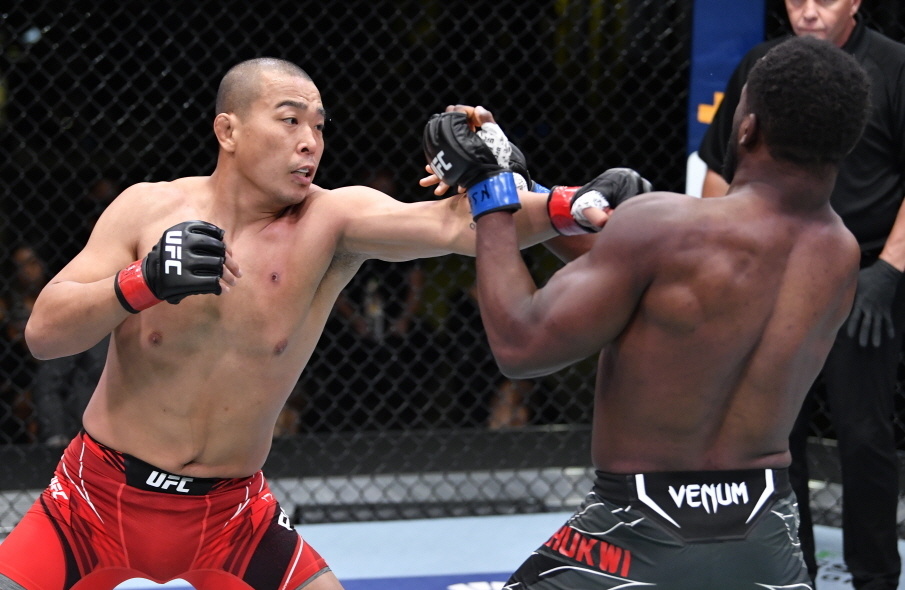 박준용(왼쪽)의 경기 모습.(UFC 제공) |