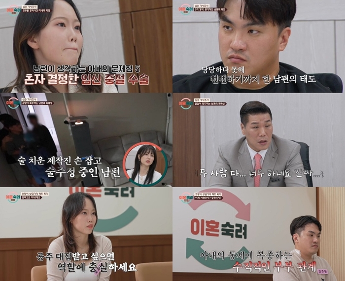 이날 가사조사 영상 속 남편은 감정 기복이 심하고 변덕스러운 아내를 ‘공주’처럼 모시며 헌신적인 모습을 보였다. 그러나 아내는 둘째 아이를 간절히 원했던 남편과 상의 없이 중절 수술을 결정해 큰 상처를 남겼고, 미안함은커녕 오히려 당당한 태도로 막말을 쏟아내 현장을 충격에 빠뜨렸다.