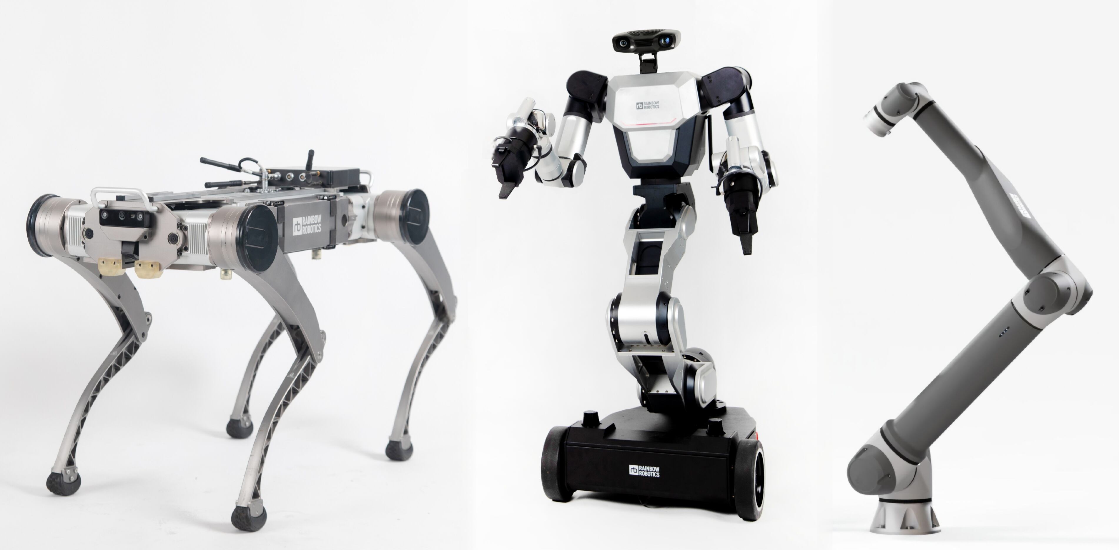 (왼쪽부터)레인보우로보틱스가 기존에 개발한 4족로봇, 이동형 양팔로봇, 협동로봇. /삼성중공업 제공 |