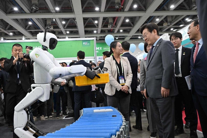 이재명 대통령이 대구 미래혁신기술박람회(FIX2025 Robex) 찾아 국내 휴머노이드 기술 기업을 격려했다.