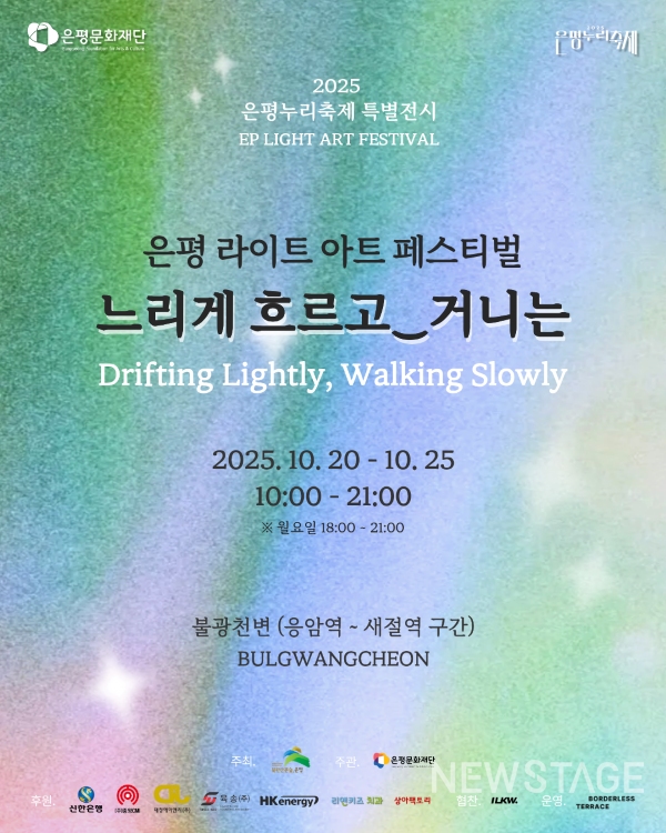 은평문화재단(대표이사 장우윤)은 오는 10월 20일(월)부터 25일(토)까지 6일간 불광천 일대(6호선 응암역~새절역 약 1km 구간)에서 '2025 은평 라이트 아트 페스티벌(EP Light Art Festival)'을 개최한다.