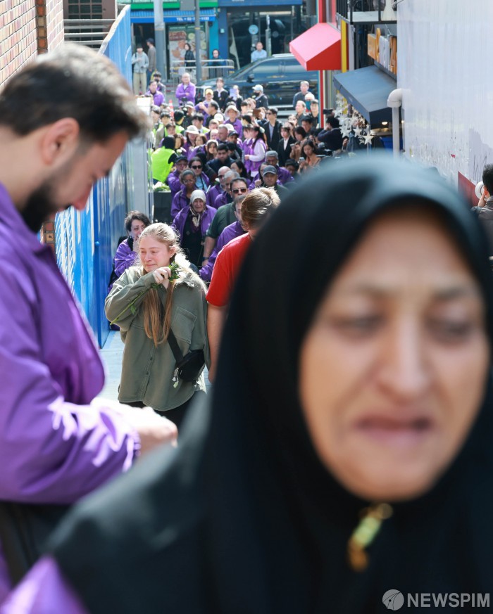 [서울=뉴스핌] 김학선 기자 = 10·29 이태원 참사 외국인 희생자 유가족들이 25일 서울 용산구 이태원역 1번 출구 앞 '10·29 기억과 안전의 길'을 찾아 참사 현장을 살펴보며 눈물을 흘리고 있다. 2025.10.25 yooksa@newspim.com
