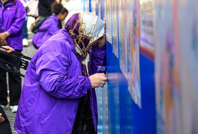 이태원 참사 3주기를 앞둔 25일 서울 용산구 이태원역 1번 출구 앞 ‘10.29 기억과 안전의 길을 찾은 외국인 희생자 유가족들이 슬픔에 잠겨 있다. 뉴스1 |