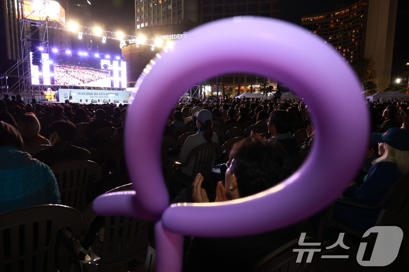 (서울=뉴스1) 이호윤 기자 = 25일 서울 중구 서울광장에서 10·29 이태원 참사 3주기 시민 추모대회가 열리고 있다. (공동취재) 2025.10.25/뉴스1