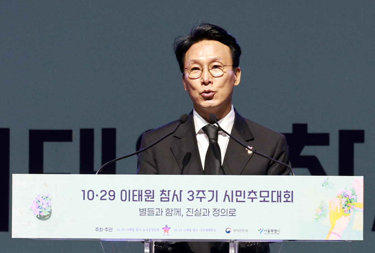 김 총리는 이날 서울시청 광장에서 열린 ‘10·29 이태원참사 3주기 시민 추모대회’에서 추모사를 통해 “단순한 사고가 아니라 공적 책임과 공적 안전망의 붕괴가 불러온 참담한 재난이었다”며 이같이 밝혔다.