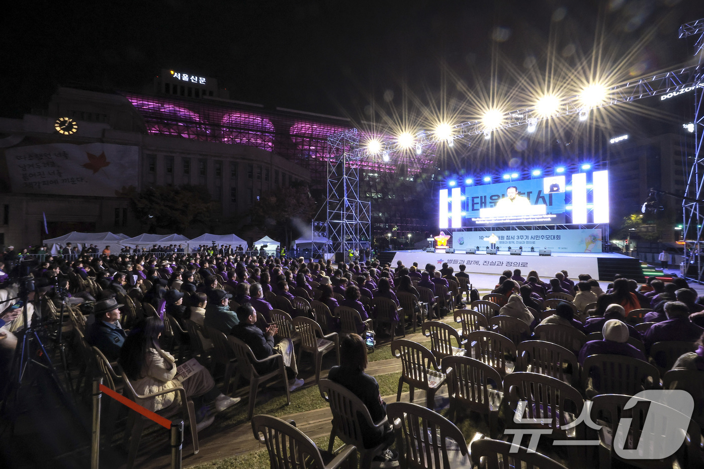 (서울=뉴스1) 이호윤 기자 = 25일 서울 중구 서울광장에서 10.29 이태원참사 3주기 시민추모대회가 열리고 있다. (공동취재) 2025.10.25/뉴스1