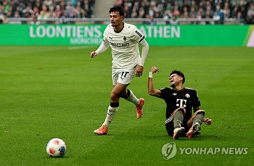 (서울=연합뉴스) 오명언 기자 = 옌스 카스트로프(묀헨글라트바흐)가 김민재(바이에른 뮌헨)와의 독일 프로축구 분데스리가 '태극전사 더비'에서 19분 만에 퇴장 당해 그라운드 밖에서 팀의 패배를 지켜봐야 했다.