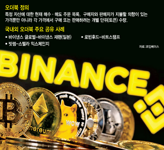 오더북은 거래소 내 매수·매도 주문 현황을 실시간으로 보여주는 체계로, 거래소 간 공유 시 유동성이 대폭 확대된다. 해외에서는 바이낸스 글로벌이 바이낸스 재팬과, 로빈후드가 비트스탬프와 각각 오더북을 공유하며 시세 왜곡을 줄이고 거래량을 극대화하고 있다.