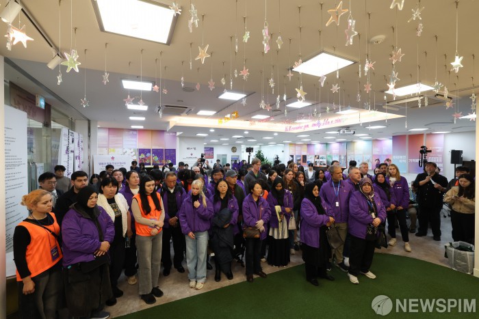 [서울=뉴스핌] 이길동 기자 =10·29 이태원참사 외국인 유가족이 26일 오후 서울 종로구 별들의 집에 방문해 희생자의 사진을 벽에 건 뒤 묵념하며 눈물 흘리고 있다. 2025.10.26 gdlee@newspim.com