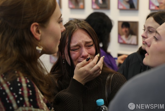 [서울=뉴스핌] 이길동 기자= 26일 서울 종로구 별들의집에서 이태원 참사 희생자 외국인 유가족들이 고인들의 사진 앞에서 슬픔을 나누고 있다.2025.10.26 gdlee@newspim.com