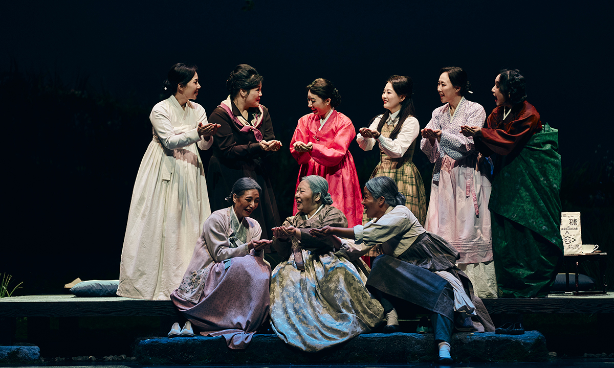 국립오페라단 신작 ‘화전가’에서 김씨 환갑을 맞아 모인 여인들이 둘째딸이 서울에서 가져온 설탕을 맛보며 즐거워하고 있다. 국립오페라단 제공 |