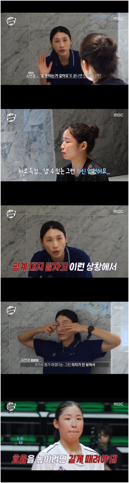 26일 방영한 MBC 일 예능 ‘신인감독 김연경’에서는 일본 최고라는 슈지츠 고등학교와의 5세트 끝에 역전패를 당한 원더독스 팀이 공개됐다. 3세트까지 어떻게든 쫓던 그들은 결국 3세트를 내주고 말았다. 거기에 서브 에이스 등장으로 리시브 실패를 하는 원더독스에 김연경은 “서브 강했어? 안 강했다. 리시브를 못 한 거다. 블로킹 위치는 공 위치다. 우리 자리 어디 있었냐. 손 위치는 어떻게 되냐. 자리를 잘 잡자”라며 계속 콕 집는 전략을 잡았다.