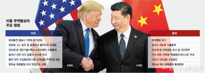 미국은 △희토류 수출통제조치 철회 △미국산 대두수입 재개 △펜타닐(마약성 진통제) 원료물질에 대한 단속강화를 촉구하고 중국은 △관세철회 △반도체 등 핵심기술 접근제한 완화 △중국 기업의 대미투자 규제완화를 요구한다.