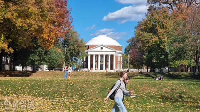 22일(현지시간) 미국 수도 워싱턴에서 남서쪽으로 약 180㎞ 떨어진 버지니아주(州)의 공립대 버지니아대. 미국 제3대 대통령 토머스 제퍼슨이 설립한 이 주립대는 매년 대학 순위 발표 때 상위권에서 빠지지 않는 명문대다. 차로 2시간 30분 달려 도착한 이 대학 샬러츠빌 캠퍼스는 단풍으로 울긋불긋했고, 지난달 새 학기 시작 뒤 차오른 학생들의 활기도 여전해 보였다.
