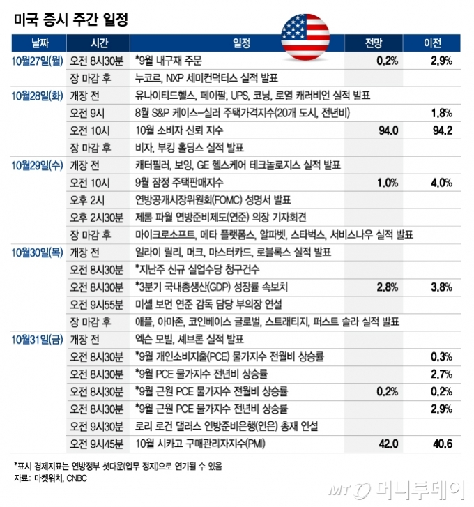 미국 증시 주간 일정_1027/그래픽=김현정 |