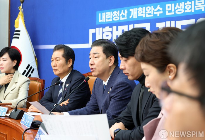[서울=뉴스핌] 정일구 기자 = 김병기 더불어민주당 원내대표가 27일 오전 서울 여의도 국회에서 열린 최고위원회의에서 모두발언을 하고 있다. 2025.10.27 mironj19@newspim.com