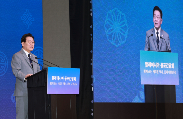 ▲이재명 대통령이 26일 말레이시아 쿠알라룸푸르 한 호텔에서 열린 동포 만찬 간담회에서 인사말을 하고 있다. ⓒ연합뉴스 |