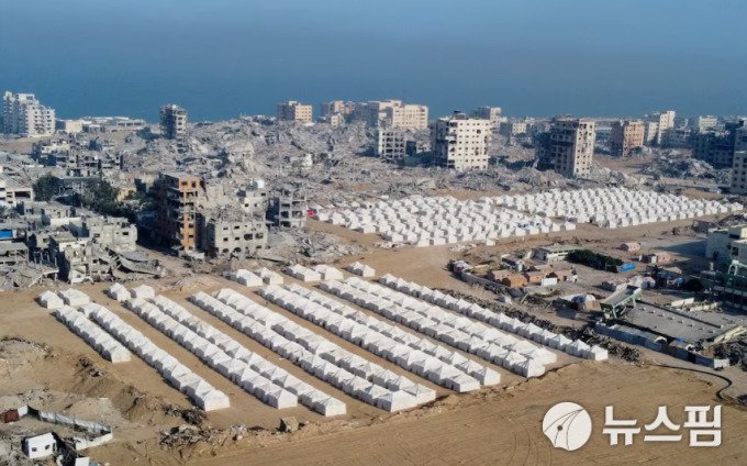 1단계 가자 정전 발효로 이스라엘군이 철수한 뒤 파괴된 건물 사이에 세워진 팔레스타인 난민촌 텐트 [서울=뉴스핌]박공식 기자 = 2025.10.27 kongsikpark@newspim.com |
