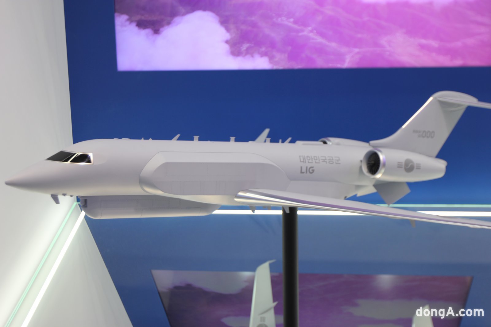 지난 24일, 일산 킨텍스 ‘서울 국제 항공우주 방위산업 전시회(ADEX)’의 마지막 날. LIG넥스원 부스 한켠에 세워진 한 대의 대형 제트기 모형 앞에 관람객들이 발길을 멈췄다. 겉모습은 민간 비즈니스 제트기 같았지만, 동체 표면에는 각종 안테나와 전자장비가 장착돼 있었다.