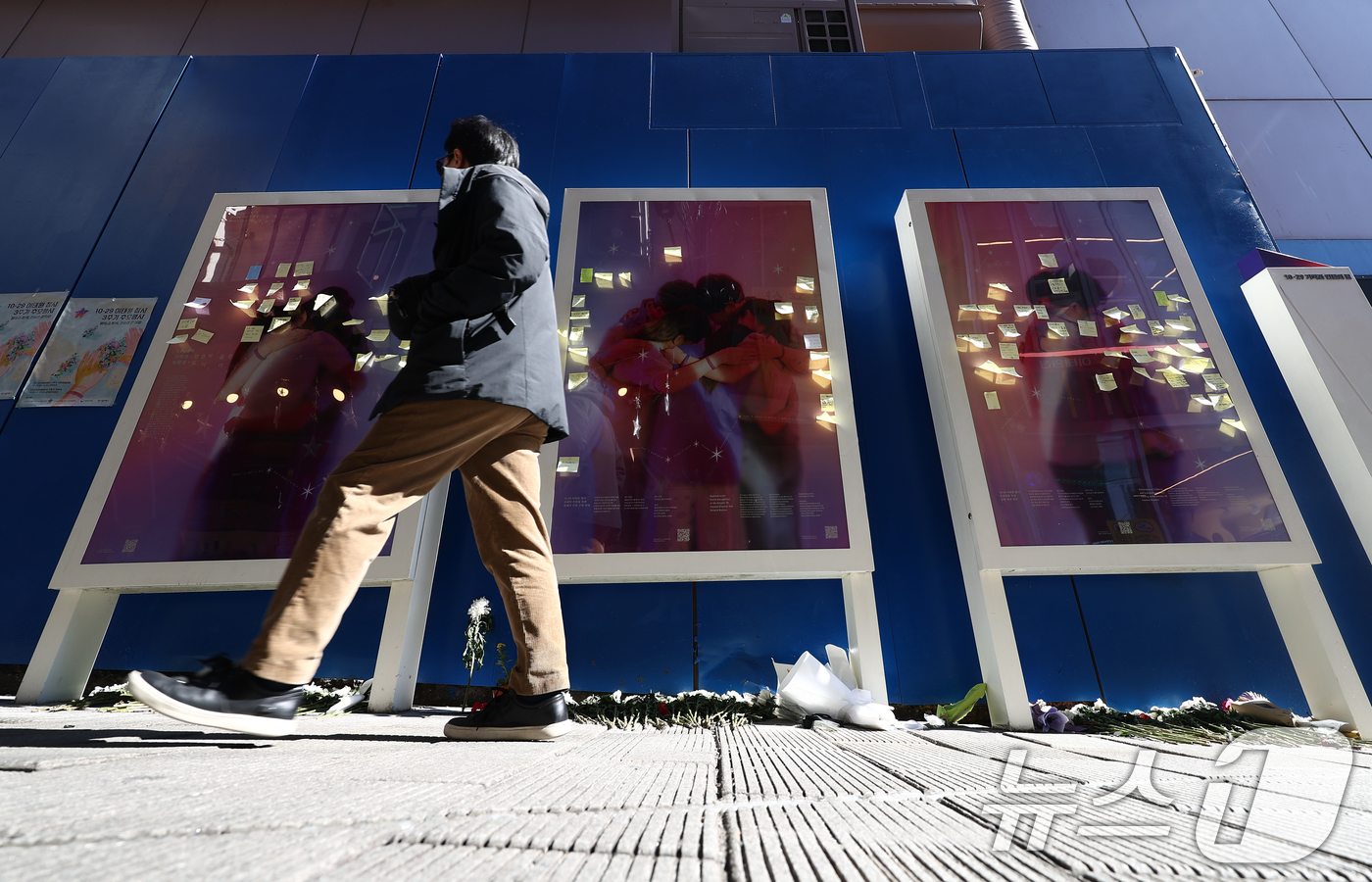 (서울=뉴스1) 김민지 기자 = 10.29이태원참사 3주기를 이틀 앞둔 27일 오후 서울 용산구 이태원참사 골목에 마련된 추모 게시판에서 한 시민이 추모 메시지를 보고 있다. 2025.10.27/뉴스1
