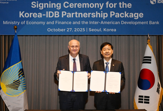 기획재정부는 27일 서울 여의도 콘래드호텔에서 열린 제7차 한-중남미 비즈니스 서밋 계기 면담에서 구윤철 부총리 겸 기획재정부 장관이 일랑 고우드파잉(IDB) 총재와 회담을 갖고 한·IDB 패키지 추진을 위한 의향서(LOI)에 서명했다고 밝혔다. IDB는 중남미 지역 개발과 경제협력을 맡는 최대 개발은행으로, 한국은 2005년 정식 가입한 뒤 올해 기준 20년째 회원국 지위를 유지하고 있다.