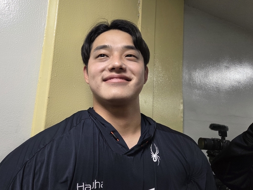 (서울=연합뉴스) 하남직 기자 = 문동주(21·한화 이글스)는 플레이오프(PO) 4차전을 앞두고 류현진(38), 코디 폰세(31), 라이언 와이스(28)에게 '90도 인사'를 받았다.