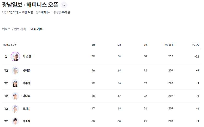 리슈잉은 지난 26일 전남 나주시 해피니스 컨트리클럽(파72)에서 열린 대회 최종 라운드에서 버디 6개, 보기 2개를 묶어 4언더파 68타를 적어냈다. 최종 합계 11언더파 205타로 공동 2위 그룹(박혜준·박주영·마다솜)을 1타 차로 따돌리고 정상에 올랐다. 이로써 KLPGA 투어 통산 11번째 외국 국적 우승자이자, 중국 국적 선수로서는 최초 우승이라는 의미 있는 기록을 세웠다.