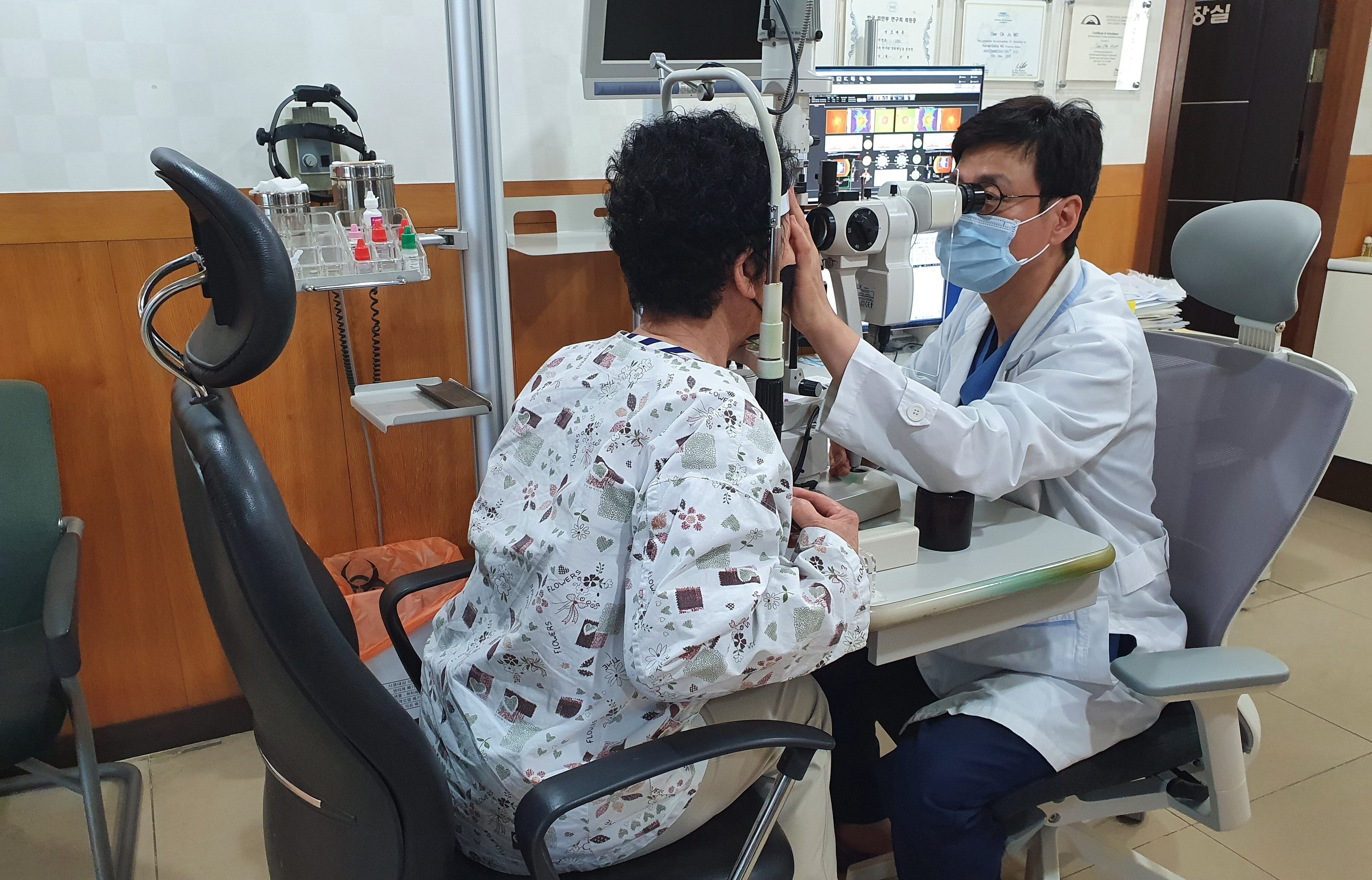 백내장 검사를 받는 환자. 기사와 직접적 관련 없음. /보성군 |
