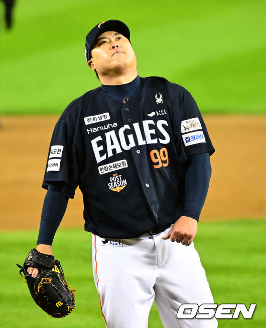 26일 LG 트윈스와의 한국시리즈 1차전 선발 중책을 맡은 그는 4⅓이닝 4피안타(1피홈런) 3볼넷 3탈삼진 4실점(3자책)으로 고개를 떨궜다. 선발 문동주가 무너지는 바람에 한화는 LG에 2-8로 덜미를 잡혔다.
