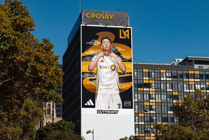 손흥민의 소속팀 LAFC는 28일(한국시간) ‘LA의 새로운 랜드마크’라고 적은 게시물을 게재하며 사진 2장을 올렸다. 해당 사진에는 한 건물에 손흥민이 LAFC 홈 유니폼을 입고 옷깃을 만지는 그림이 걸려 있다.