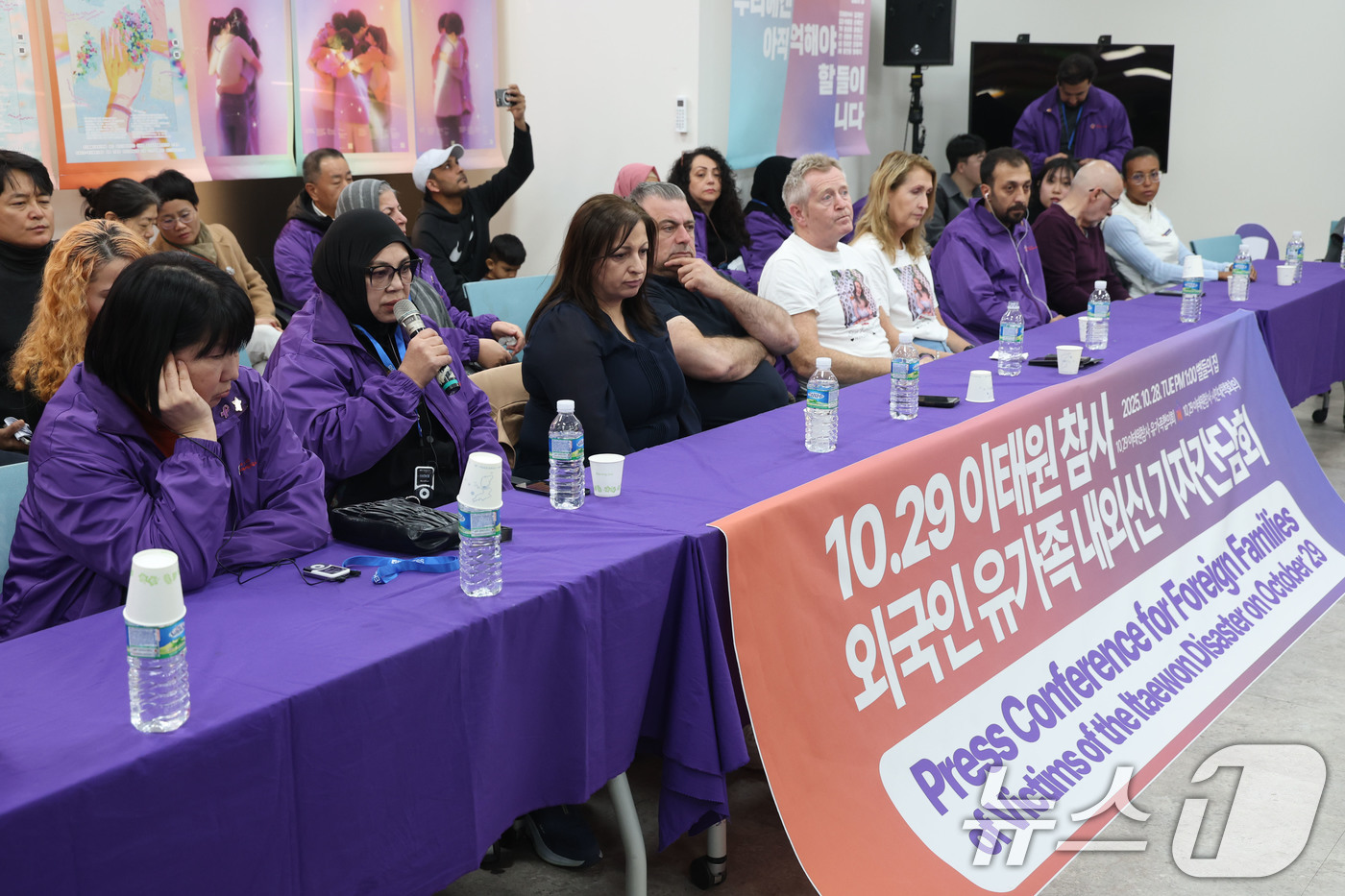 (서울=뉴스1) 이광호 기자 = 28일 오후 서울 종로구 10.29이태원 참사 기억 소통 공간 '별들의집'에서 이태원 참사 외국인 유가족 내외신 기자간담회가 열리고 있다. 2025.10.28/뉴스1