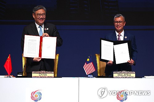 아세안 정상회의 마지막 날인 현지시간 28일 말레이시아 쿠알라룸푸르에서 중국과 아세안은 리창 국무원 총리와 올해 아세안 의장국인 말레이시아의 안와르 이브라힘 총리 등이 참석한 가운데 중국-아세안 'FTA 버전 3.0'에 서명했습니다.