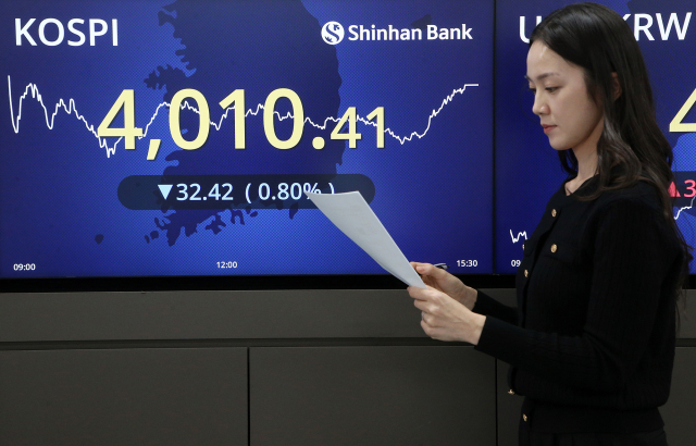 28일 마감된 국내 증시에서 코스피 지수는 전날대비 32.42포인트(-0.80%) 하락한 4010.41으로 마감했다. 기관과 개인이 매수 우위를 보였지만 외국인이 매도 우위로 돌아서면서 하락했다.
