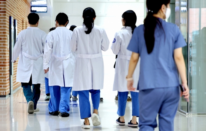 의과대학 증원 정책에 반발해 집단 사직했던 전공의들이 수련병원에 복귀한 지난달 1일 대구 시내의 한 대학병원에서 의료진들이 이동하고 있다. /사진=뉴시스 |