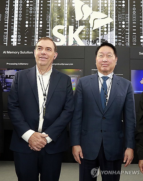 최 회장은 이날 맷 가먼 아마존웹서비스(AWS) CEO와 함께 국내 대표 기업들의 전시 부스를 살폈다.