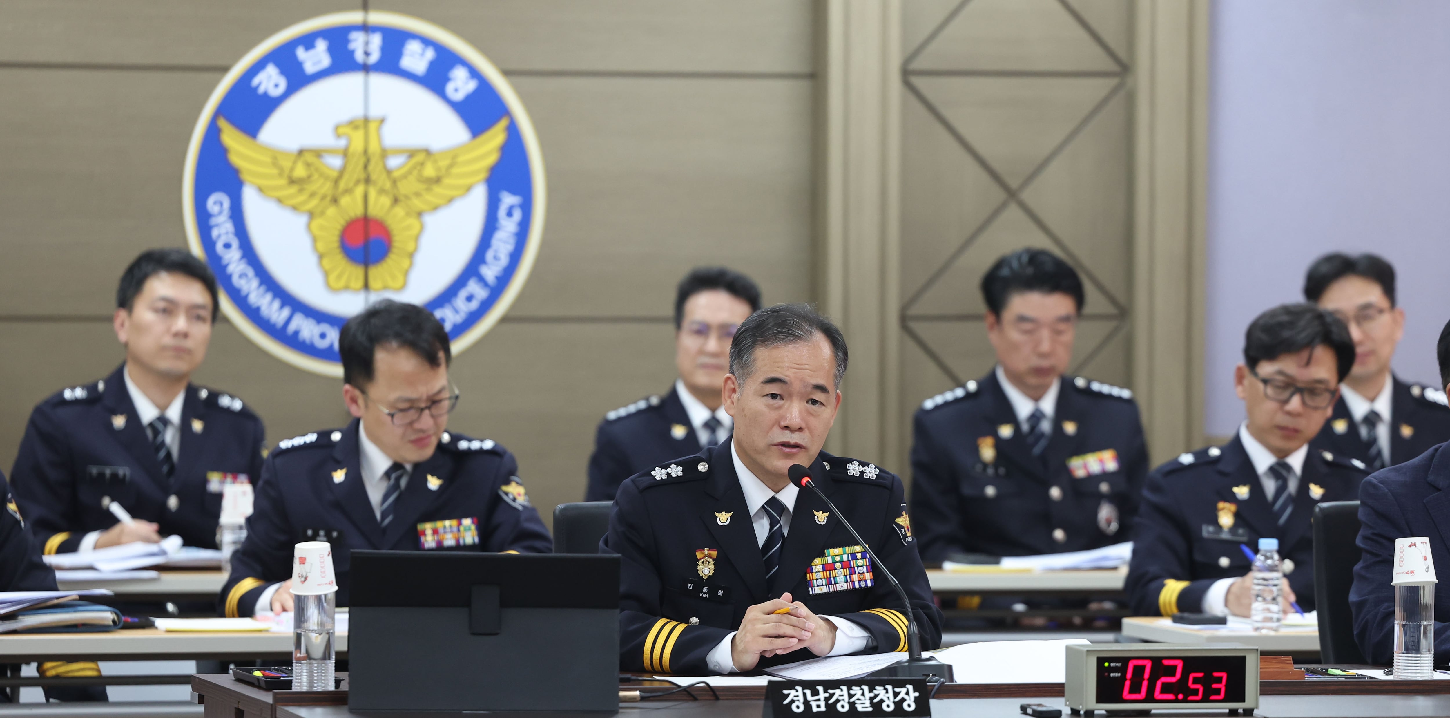 김종철 경남경찰청장이 28일 오후 경남경찰청에서 열린 국회 행정안전위원회 경남경찰청 국감에서 의원 질의에 답변하고 있다. /연합뉴스 |