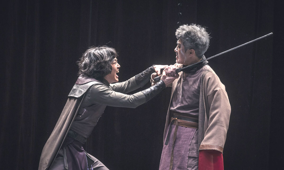흥행 기록을 세우며 일곱번째 시즌 10주년 기념공연을 펼치게 된 연극 ‘조씨고아, 복수의 씨앗’. 자신의 출신 내력을 알게 된 조씨고아(이형훈)가 이를 알려준 정영(하성광) 목에 칼을 대고 있다. 국립극단 제공 |