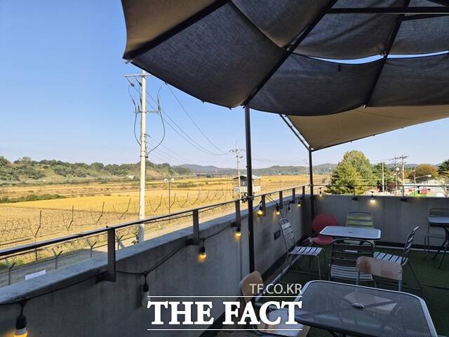 카페를 향해 갑자기 쏟아진 관심이 싫지만은 않은 눈치였다. 야외로 향한 이 카페의 테라스 자리에서 민간인 통제선(민통선)과 임진강이 내려다 보인다. 세계 최초의 민간인출입통제구역(민통선) 구간을 운행하는 임진강 평화 곤돌라가 오가는 모습을 볼 수 있는 풍경 명소다.