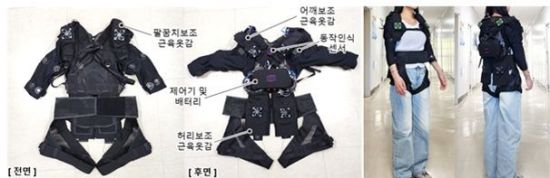 연구팀은 이 근육옷감을 적용해 팔꿈치·어깨·허리 3관절을 동시에 보조하는 의복형 웨어러블 로봇을 세계 최초로 개발했다. 무게는 2㎏ 미만으로, 착용자의 근육 사용량을 40% 이상 줄이는 효과가 확인됐다.