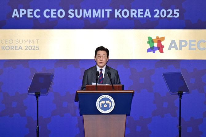 이재명 대통령이 29일 경북 경주예술의전당에서 열린 ‘APEC CEO(최고경영자) 서밋’ 개회식에서 특별연설을 하고 있다.(사진=연합뉴스) |