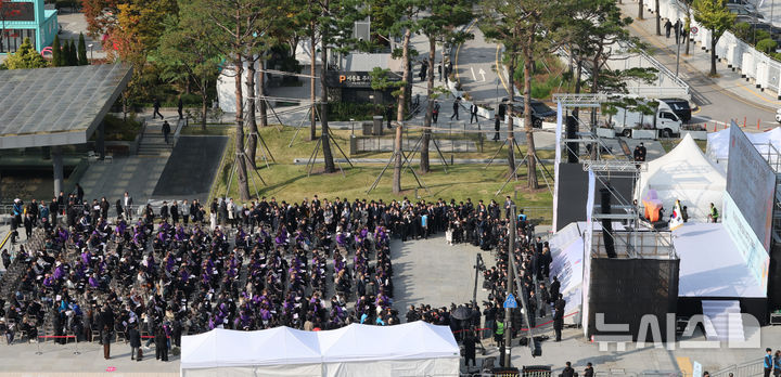 이태원 참사 유가족협의회와 시민대책회의는 29일 오전 10시29분 서울 종로구 광화문 북광장에서 행정안전부, 서울시와 공동으로 '별들과 함께, 진실과 정의로'를 주제로 이태원 참사 3주기 기억식을 열었다.