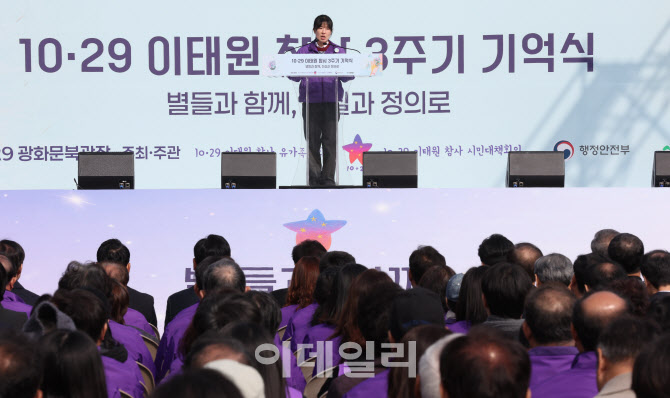 [이데일리 이영훈 기자] 10·29 이태원 참사 3주기를 맞은 29일 서울 종로구 광화문광장에서 열린 '이태원참사 3주기 기억식'에서 송해진 유가족협의회 운영위원장이 발언을 하고 있다.