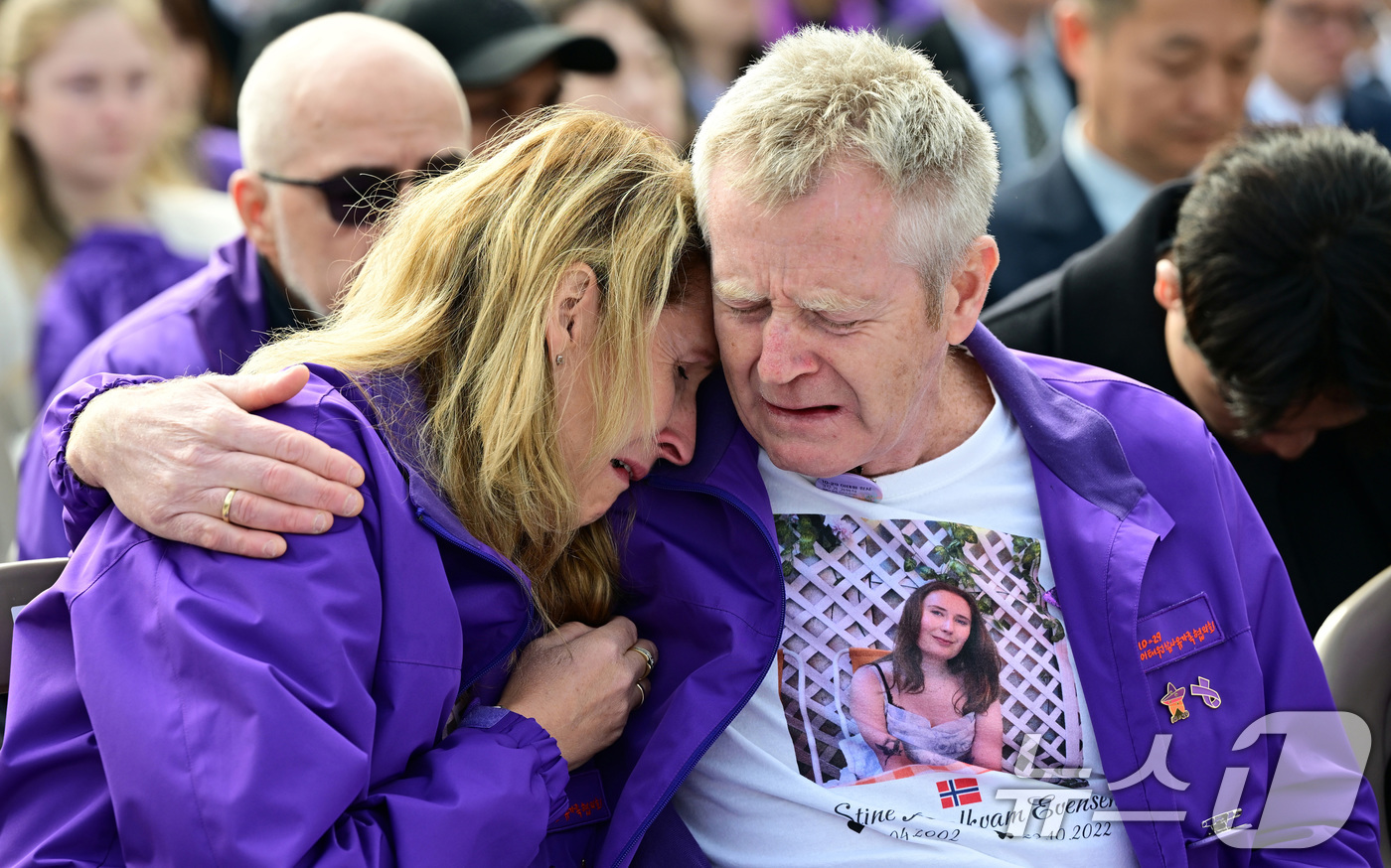 고 스티네 로아크밤 에벤센 씨의 부모가 29일 오전 서울 종로구 광화문광장에서 열린 10.29 이태원 참사 3주기 기억식에서 딸을 회상하며 눈물을 흘리고 있다. (공동취재) ⓒ News1 김성진 기자 |